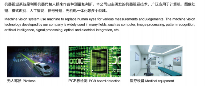A machine vision system uses machines to replace human eyes for various measurements and judgments. The machine vision technology independently developed by our company is widely applied in multiple fields such as computer science, image processing, pattern recognition, artificial intelligence, signal processing, and opto-mechatronics integration.